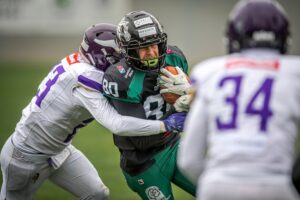 Das Wiener Derby zwischen den AFC Vienna Vikings und den Danube Dragons hielt, was es versprach: Tempo, Big Plays und Turnover. Am Ende setzten sich